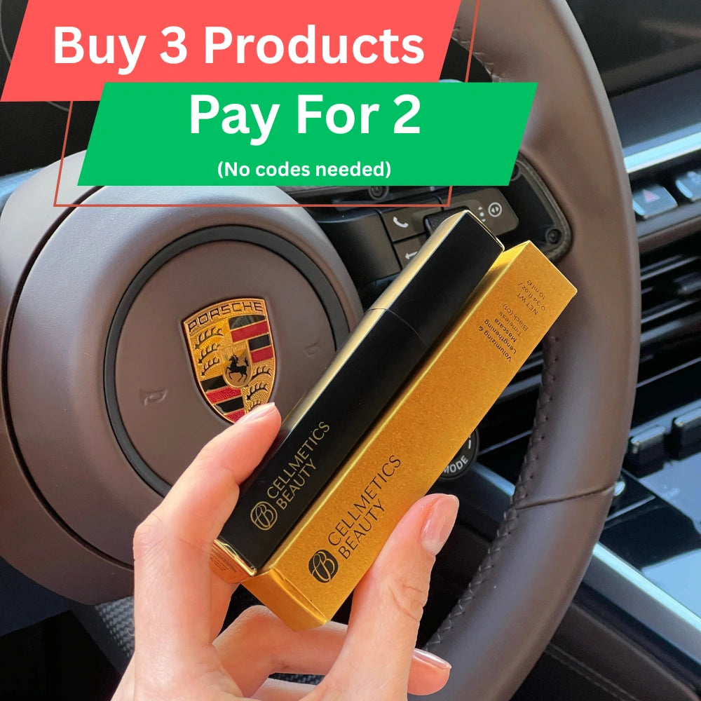 Curl your lashes and apply the Volumizing and Lengthening Mascara for dramatic lift and definition.
