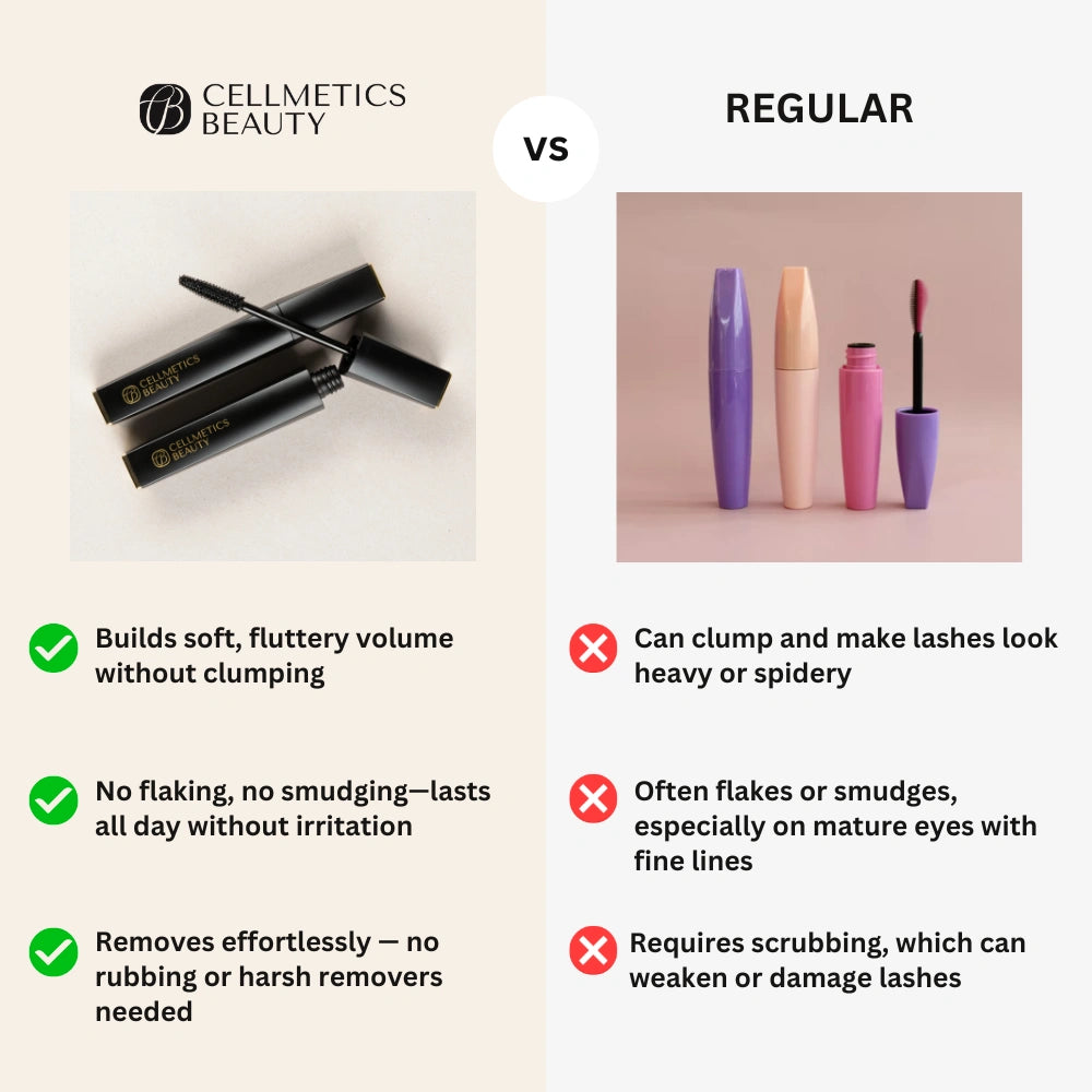 Our lightweight, buildable formula is designed specifically for mature lashes—so you get fullness and definition without the smudging, flaking, or heavy feeling of traditional mascaras.