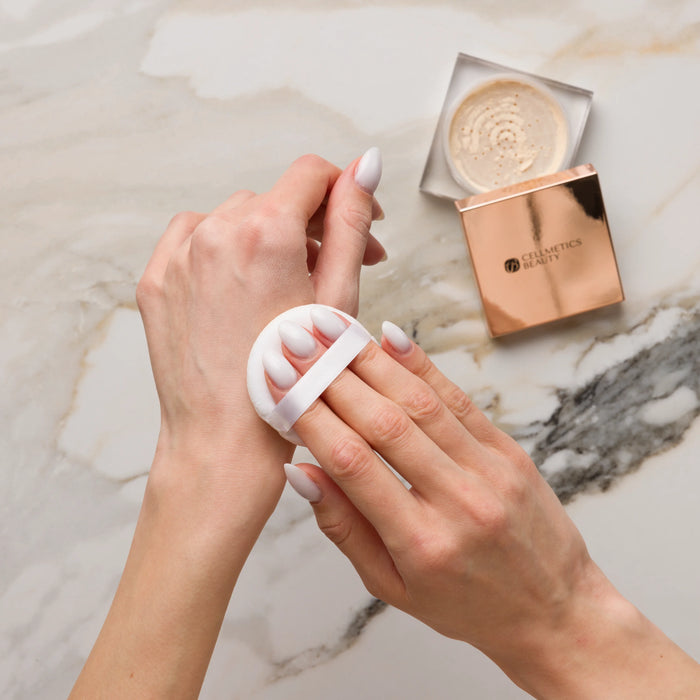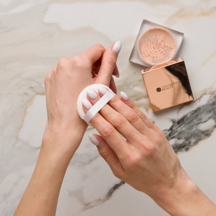 For All-Over Setting:Lightly dust powder over the face using a fluffy brush.