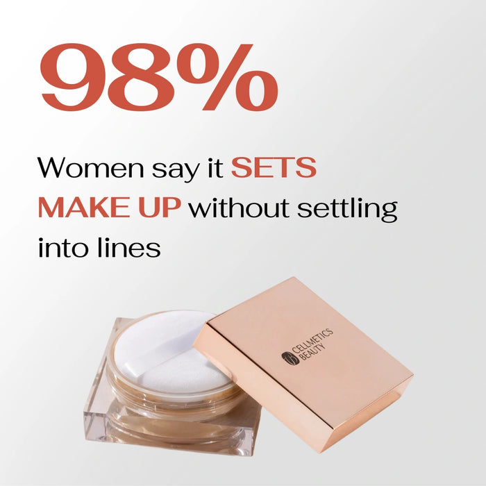 No, the weightless formula is designed to set makeup without settling into fine lines or looking cakey. It creates a soft-focus effect, leaving your skin smooth and natural-looking.