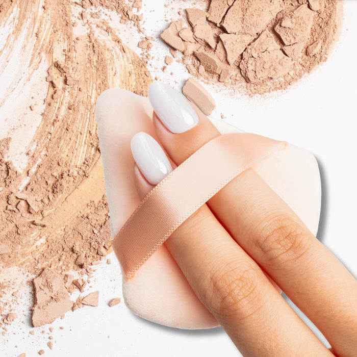 For Under-Eyes & T-Zone - Gently press the puff into your loose or pressed powder, then lightly pat over areas prone to creasing—like under the eyes and around the nose—for a smooth, set finish.