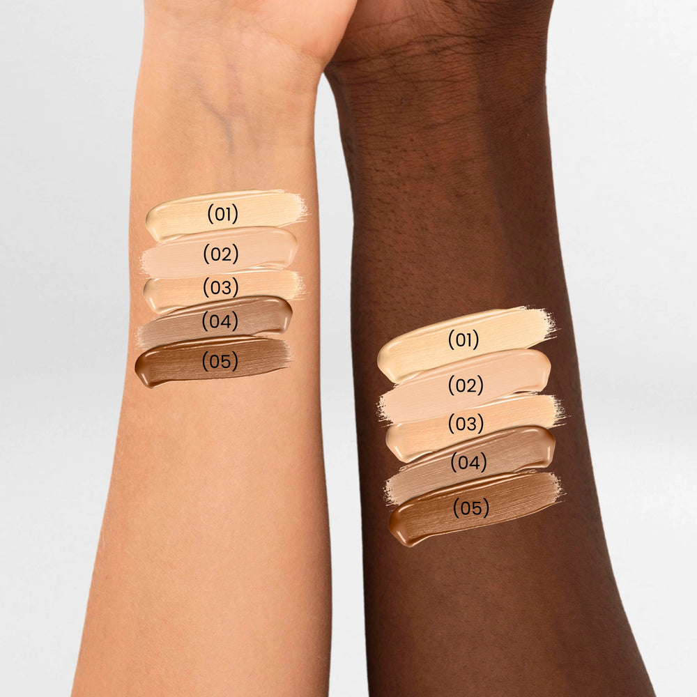 No — the lightweight, breathable texture is formulated to glide smoothly over skin, avoiding the cakey or heavy look of traditional foundations.