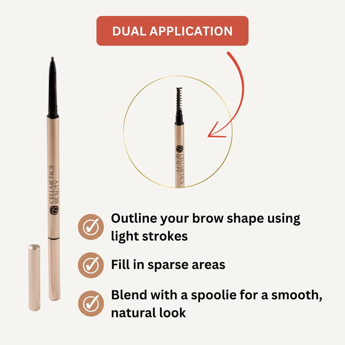 Soft, realistic strokes that mimic natural hair. Perfect for thinning, sparse, or uneven brows, this ultra-slim pencil defines without tugging and stays put all day.