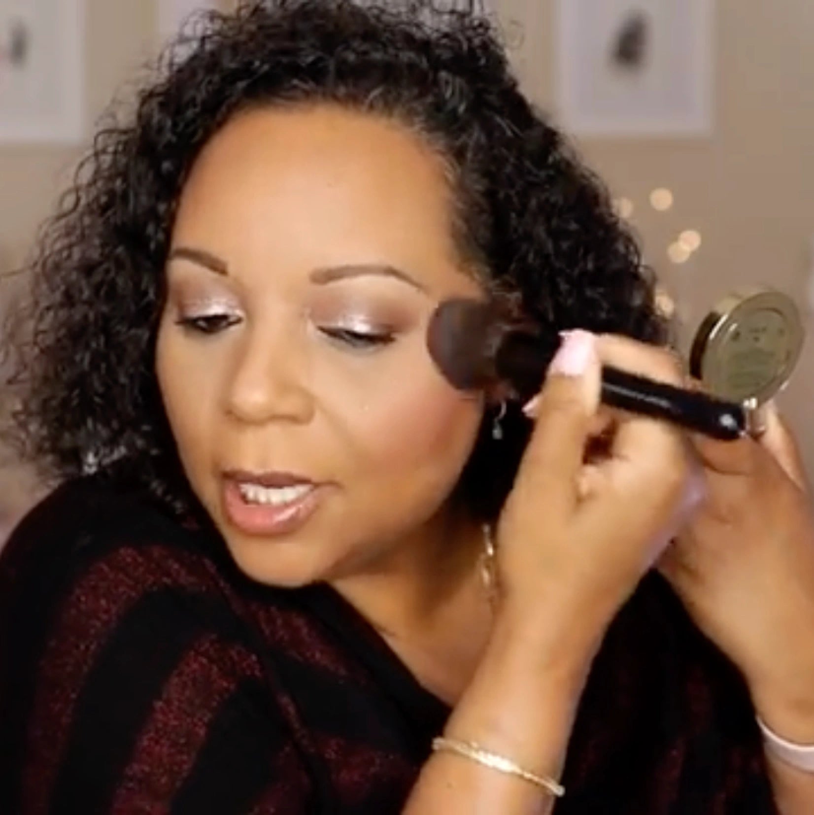 Swirl brush gently in pan and tap off excess. For lifted look, sweep from middle of cheek upward toward temples. For sun-kissed glow, brush lightly across cheekbones and bridge of nose. Build color gradually for desired warmth.