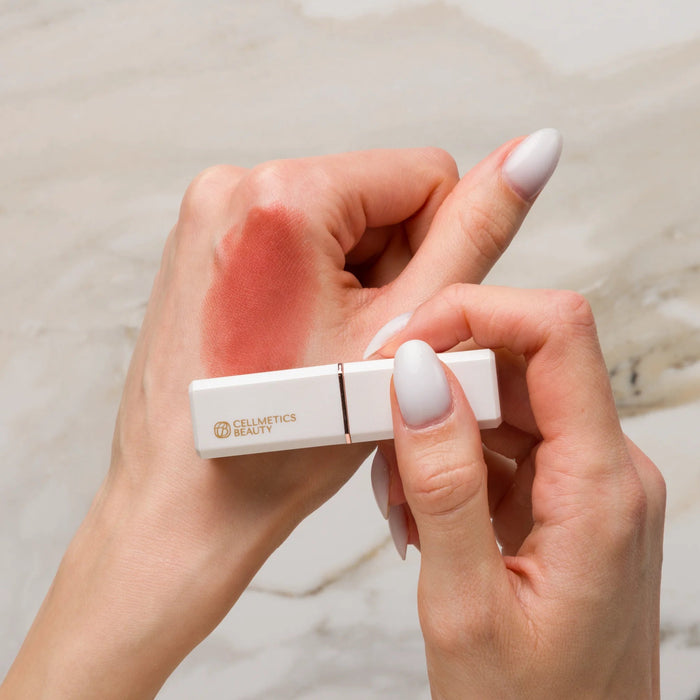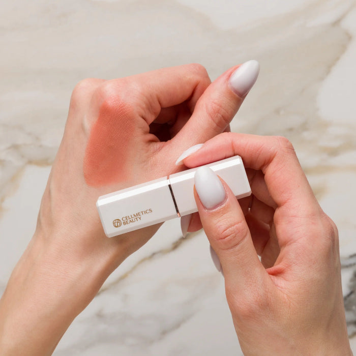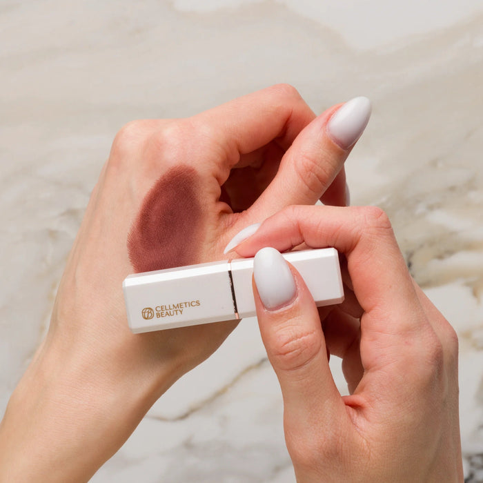 For a Soft, Blotted Effect: Dab lightly onto lips and blend with fingertips.
