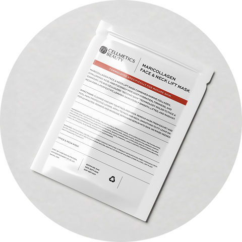 The Maricollagen Face & Neck Lift Mask delivers deep hydration and a revitalizing lift with marine collagen, hyaluronic acid, and Fucogel®.